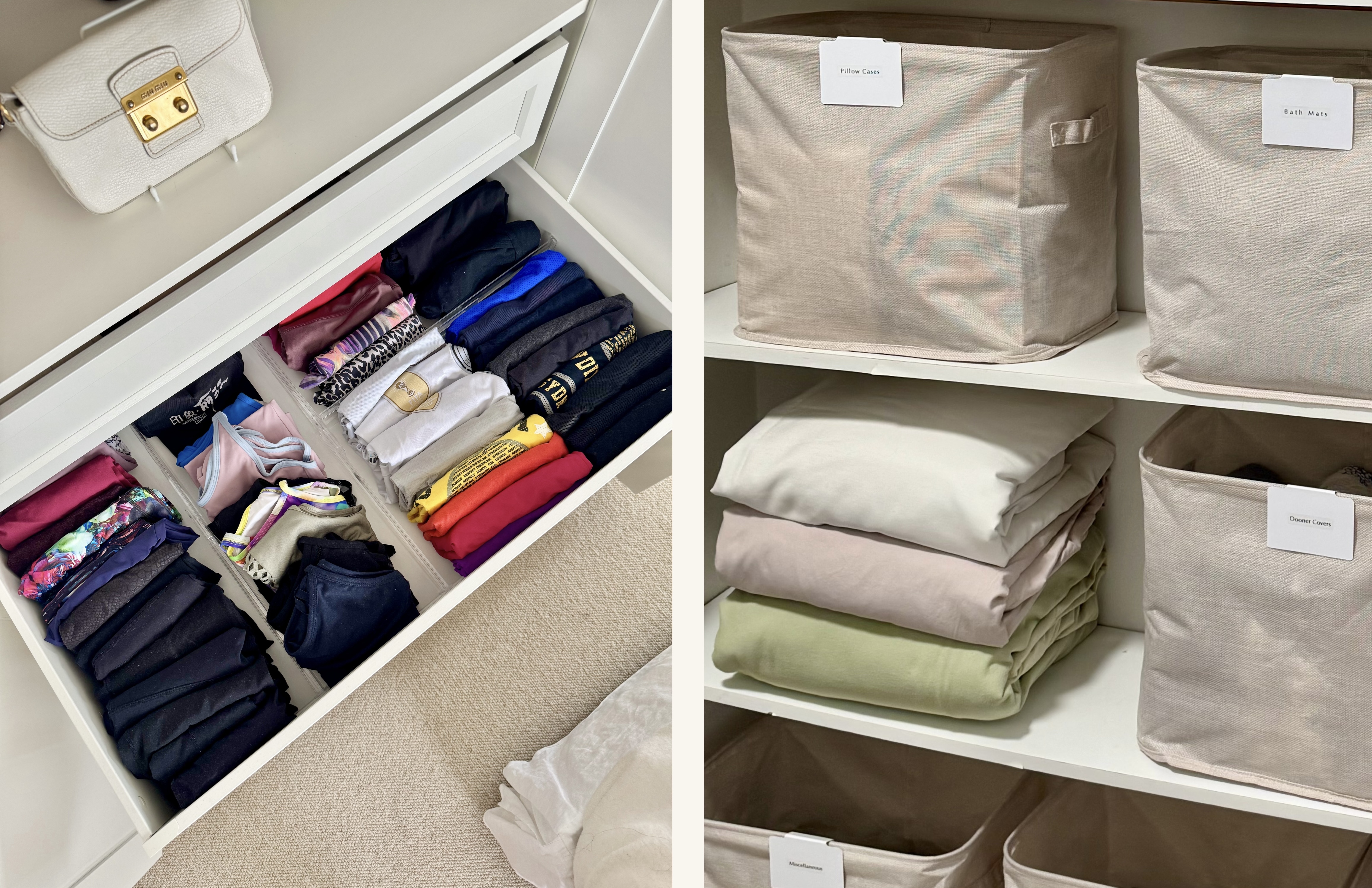 This is where the magic happens. High quality storage solutions are installed, and then your space is arranged so it’s organised, practical, and visually appealing. We guide the process of removing unnecessary items, sorting belongings, and creating clear, functional systems for each area. We add labels, clean work surfaces and include complementary styling touches to make the space feel complete. The process is designed to feel like a full reset, not just a quick tidy.